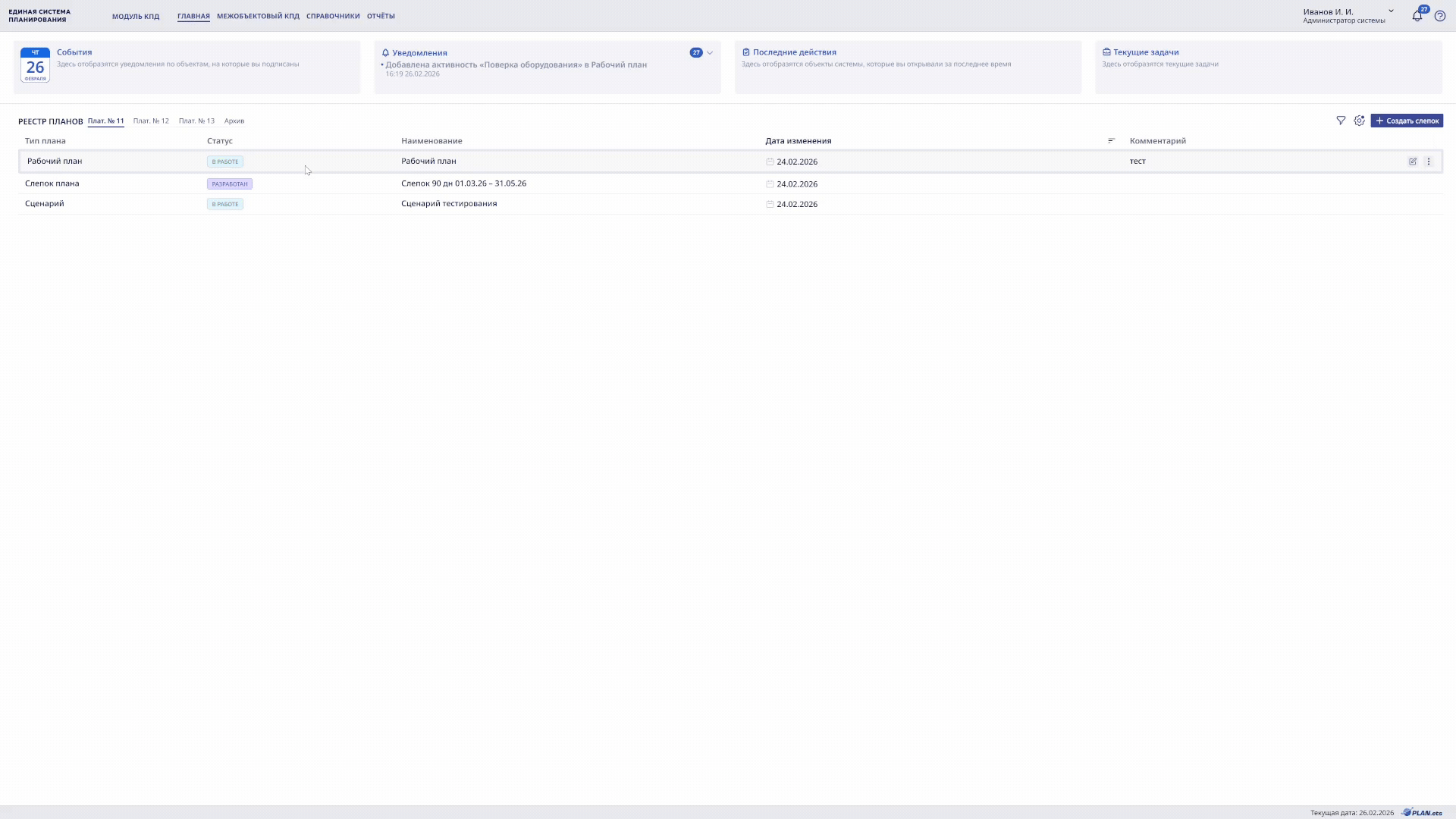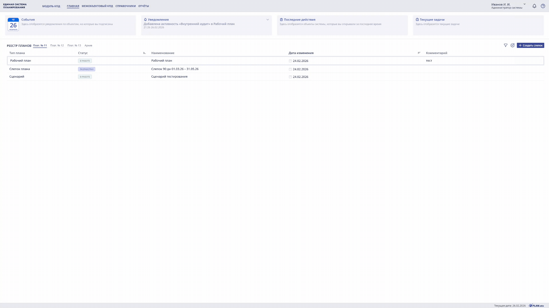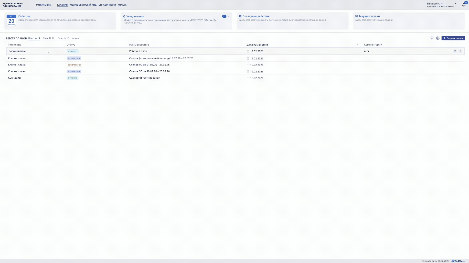 Централизованный учёт, мониторинг и контроль исполнения интегрированного плана, оперативное отслеживание статуса мероприятий и достижений целевых показателей.