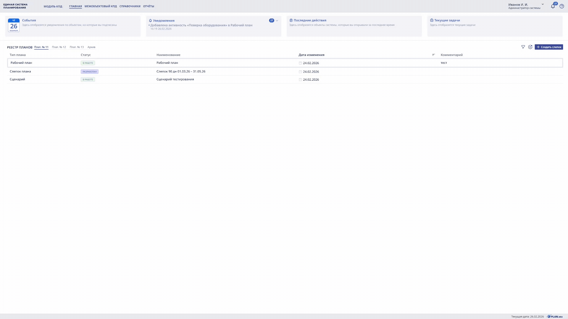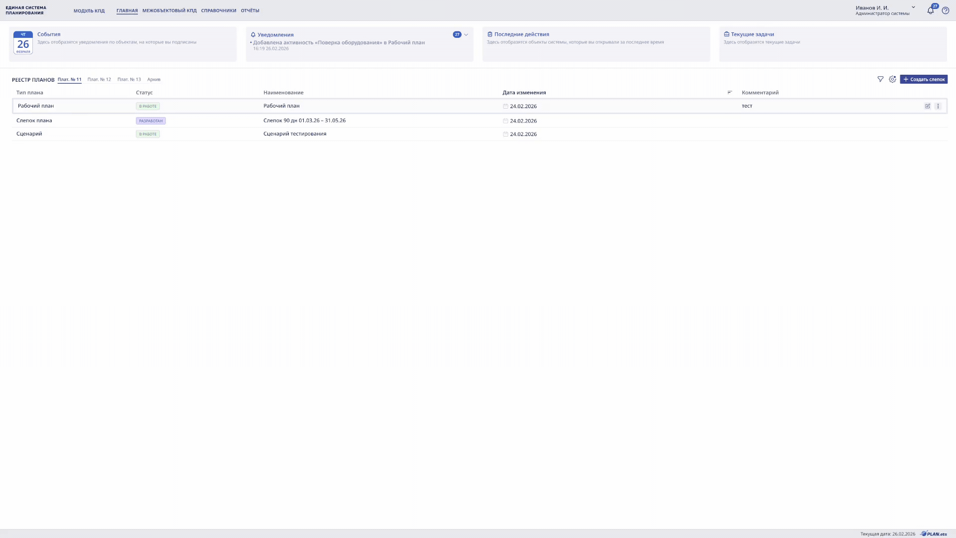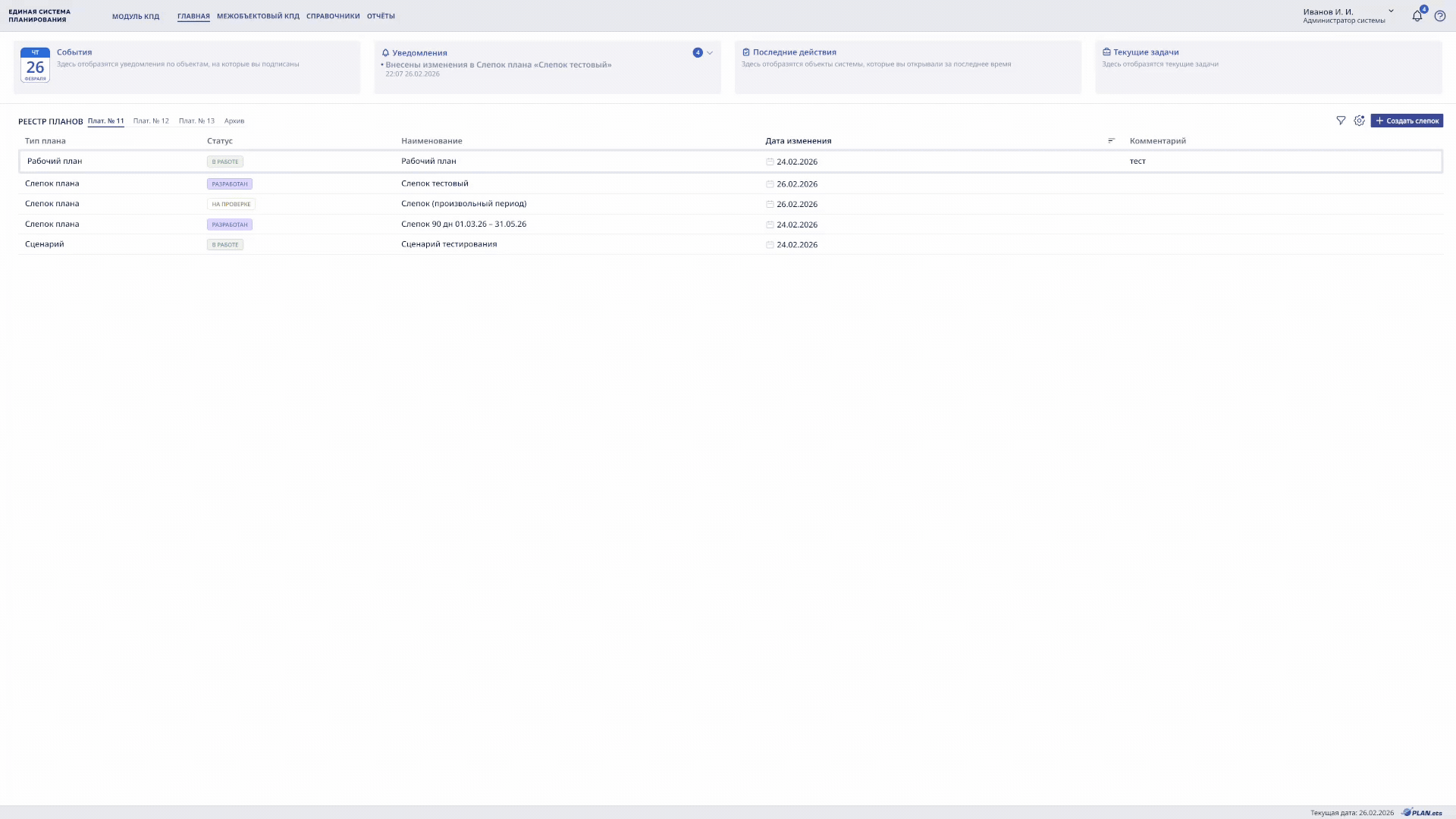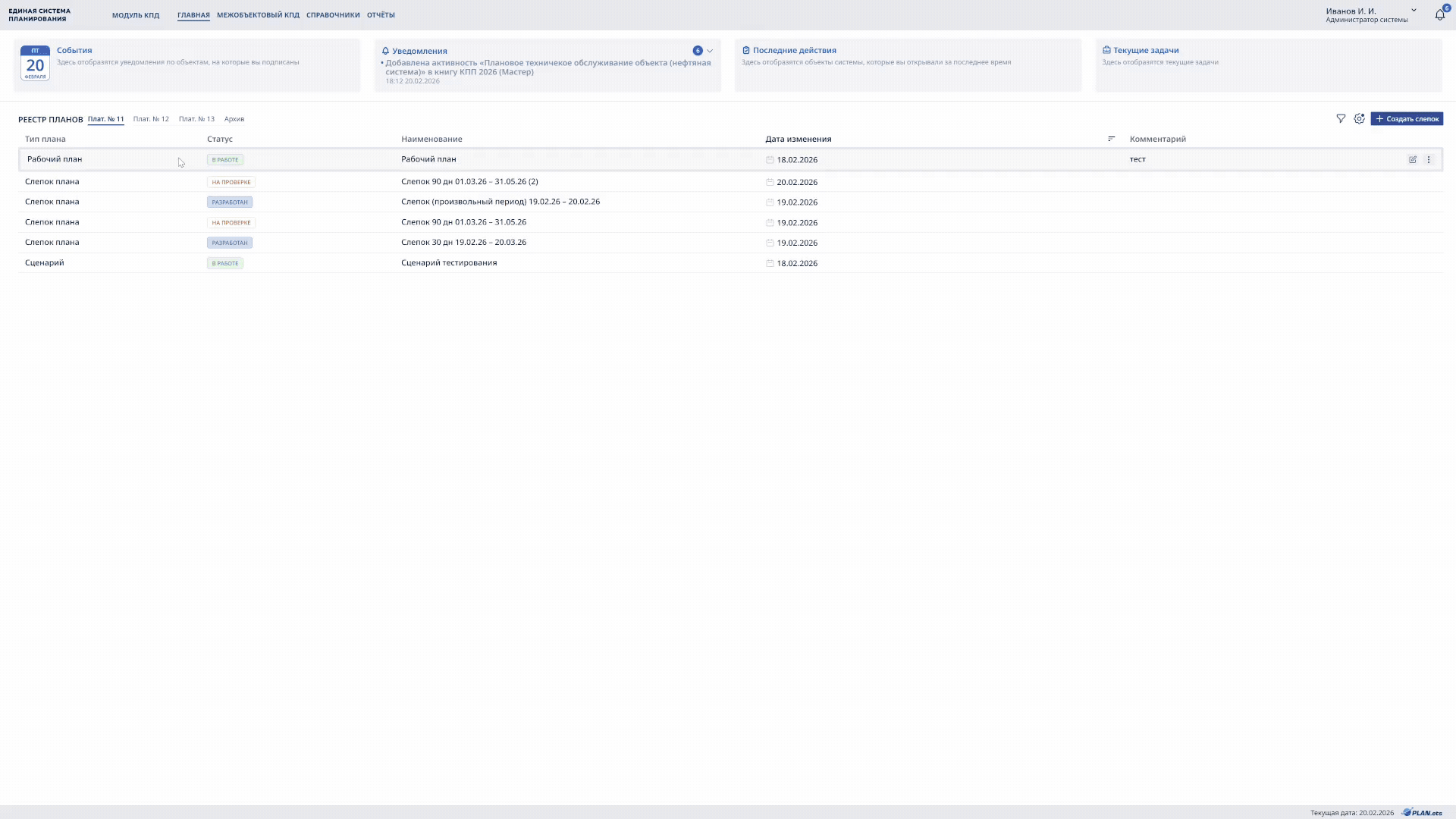 Централизованный учёт, мониторинг и контроль исполнения интегрированного плана, оперативное отслеживание статуса мероприятий и достижений целевых показателей.